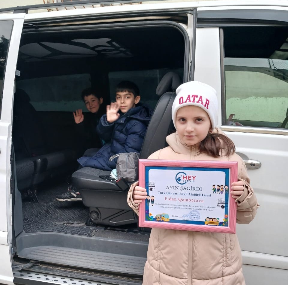 “Türk Dünyası Bakü Atatürk Lisesi”nin şagirdi  Fidan Qənbərova servisdəki nümunəvi davranışlarına görə, “Hey Servis”şirkəti tərəfindən ayın şagirdi seçildi ,Fidanı təbrik edir,uğurlar arzu edirik