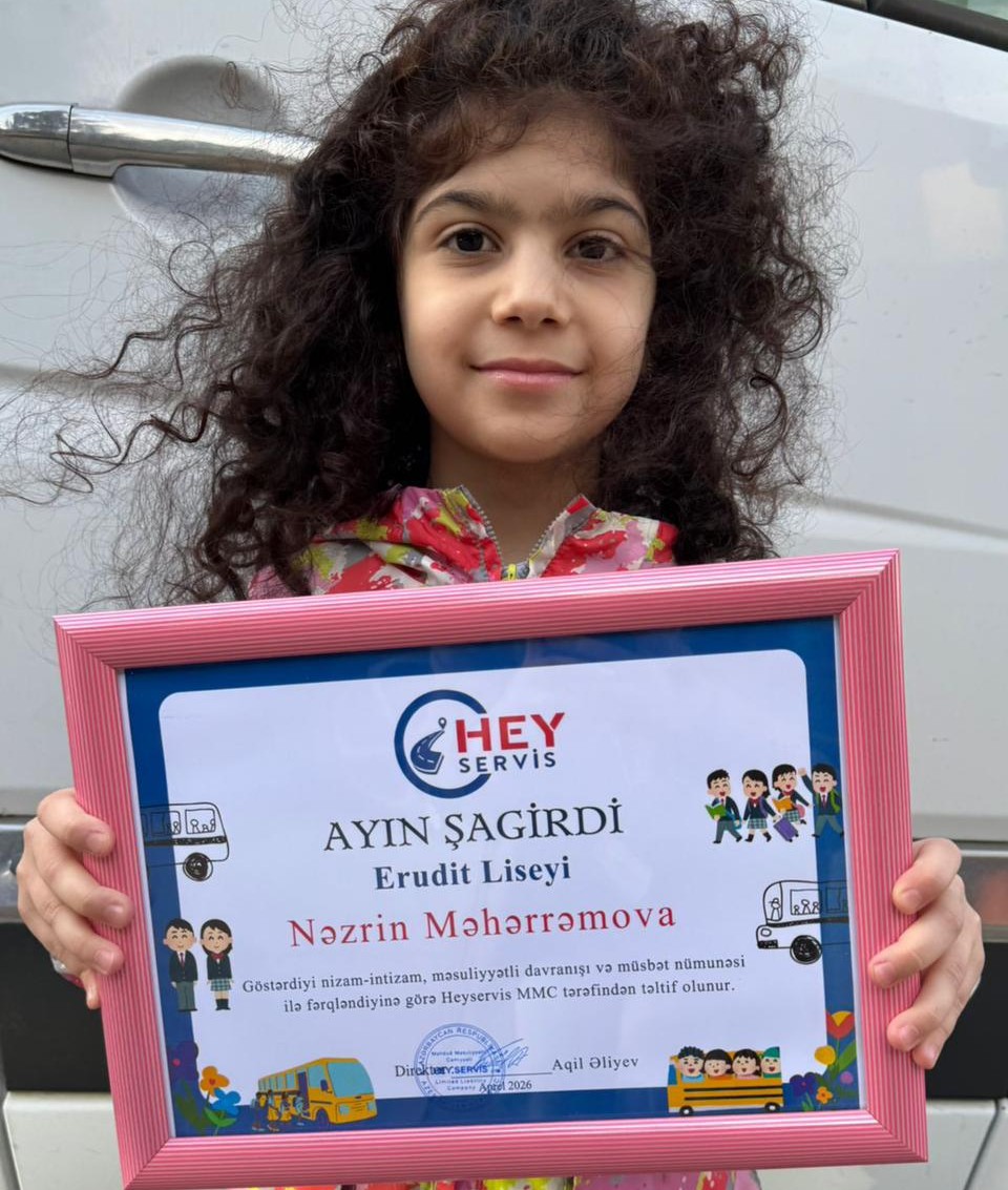 “Erudit Liseyi”nin şagirdi Nəzrin Məhərrəmova servisdəki nümunəvi davranışlarına görə, “Hey Servis”şirkəti tərəfindən ayın şagirdi seçildi , Nəzrini təbrik edir,uğurlar arzu edirik