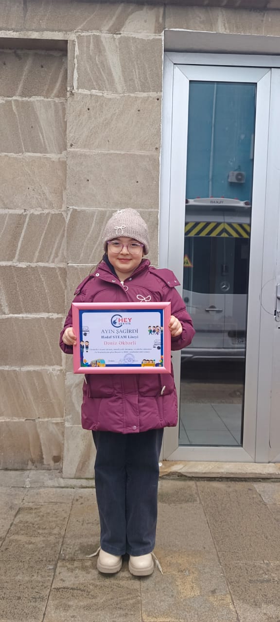 “Hədəf STEAM Liseyi”nin şagirdi Dəniz Əkbərli servisdəki nümunəvi davranışlarına görə, “Hey Servis”şirkəti tərəfindən ayın şagirdi seçildi , Dənizi təbrik edir,uğurlar arzu edirik