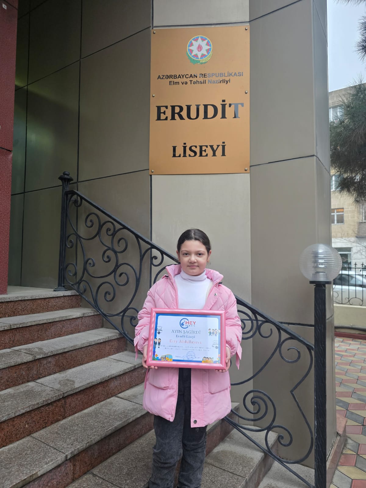 “Erudit Liseyi”nin şagirdi Elay Abdullayeva servisdəki nümunəvi davranışlarına görə, “Hey Servis”şirkəti tərəfindən ayın şagirdi seçildi , Elayı təbrik edir,uğurlar arzu edirik