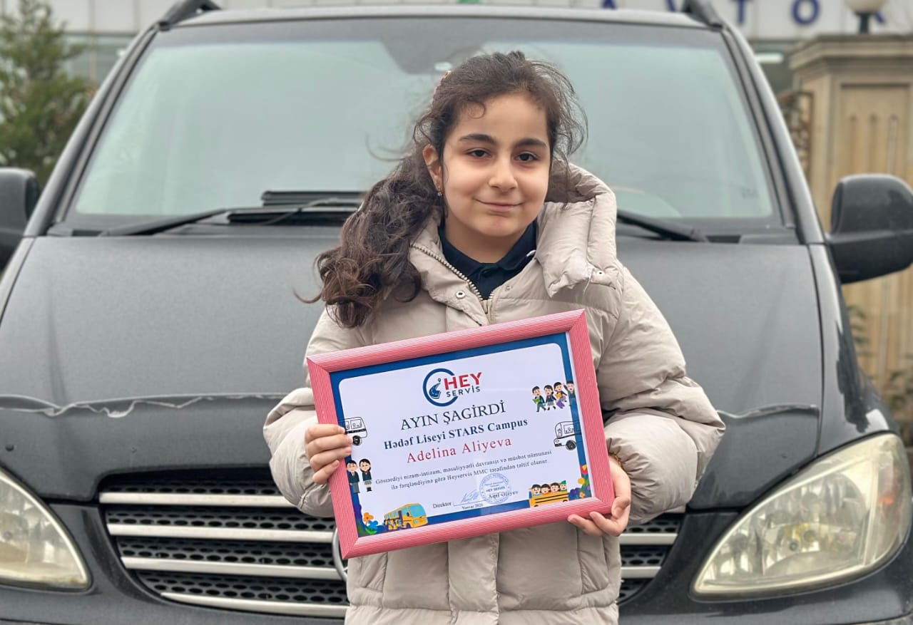 “Hədəf Liseyi STARS Campus”un şagirdi Adelina Aliyeva servisdəki nümunəvi davranışlarına görə, “Hey Servis”şirkəti tərəfindən ayın şagirdi seçildi , Adelinanı təbrik edir,uğurlar arzu edirik
