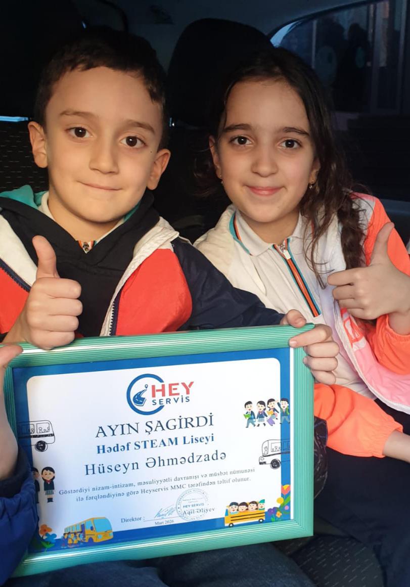 “Hədəf STEAM Liseyi”nin şagirdi Hüseyn Əhmədzadə servisdəki nümunəvi davranışlarına görə, “Hey Servis”şirkəti tərəfindən ayın şagirdi seçildi , Hüseyni təbrik edir,uğurlar arzu edirik